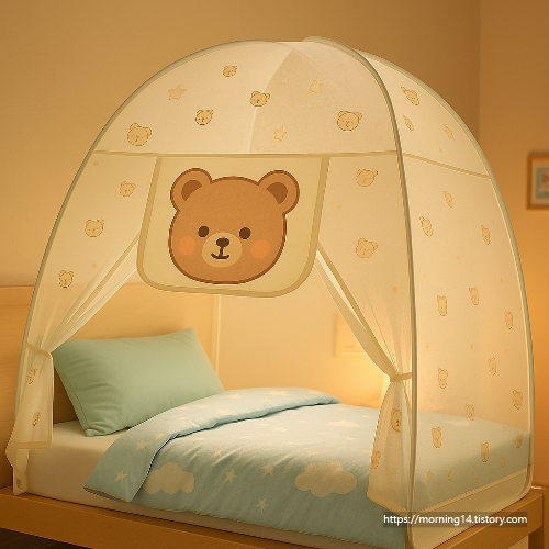 기본 중의 기본템! 침대용, 야외용 텐트형 모기장까지 다양한 형태로 판매되고 있으며 설치도 간편합니다. 물리적인 차단 효과가 확실해 수면 중 모기 걱정 없이 숙면 가능.