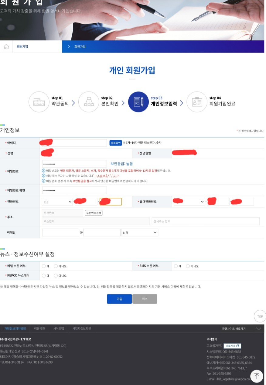이름, 주소 등 필요한 정보를 입력해주세요.