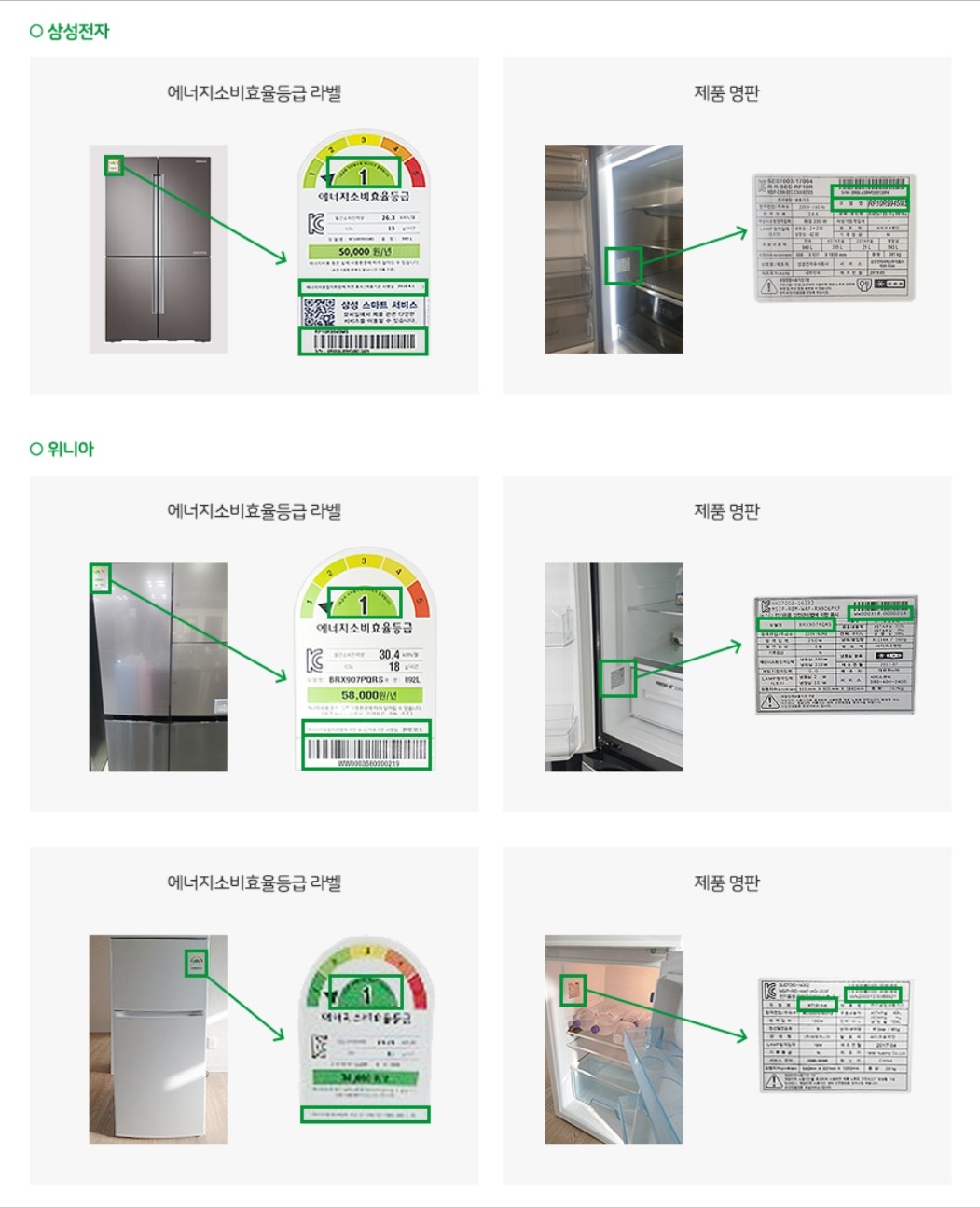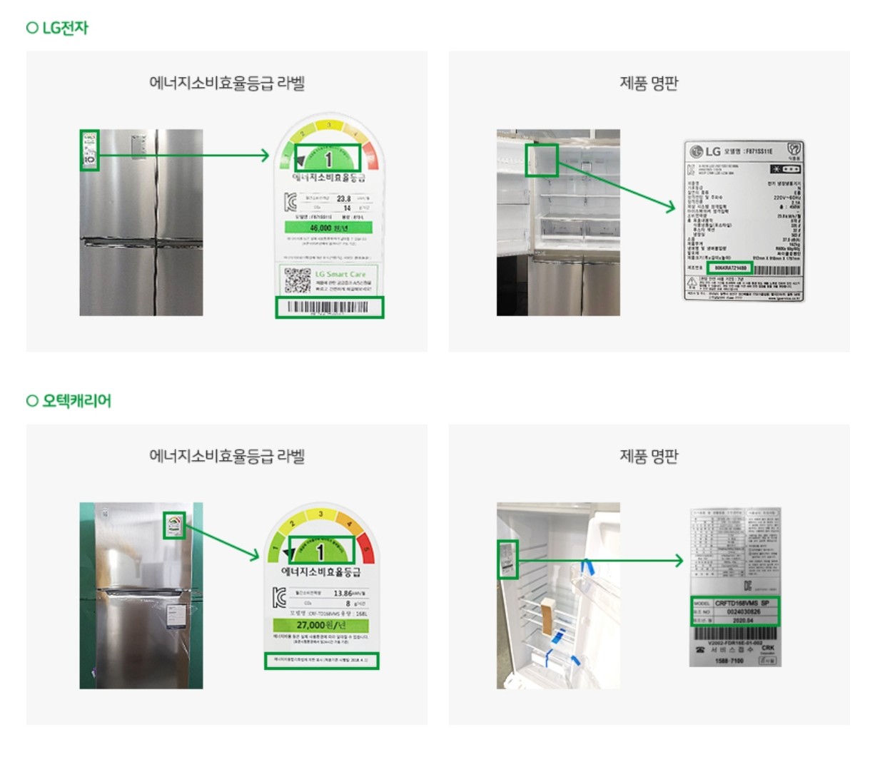 ※ 에너지소비효율등급 라벨의 모델명 기입