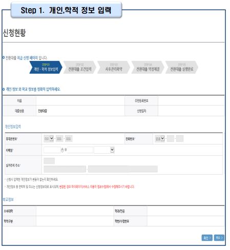 2. 학자금 신청현황(지급신청)