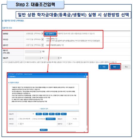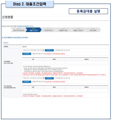계좌정보(본인명의 입출금 계좌등록), 대학 등록금 및 생활비 대출금액 설정하시고 일반상환 학자금대출 실행 시 자동이체계좌등록이 필요합니다.(이자 및 원리금 상환용)