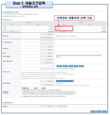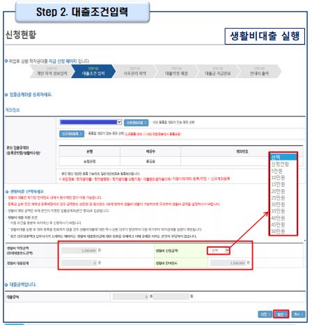※ 대학등록예정자의 경우 등록 전까지 50만원 한도, 1회만 우선적으로 대출이 가능합니다.
